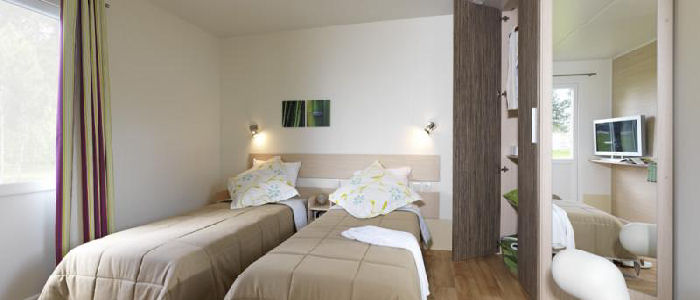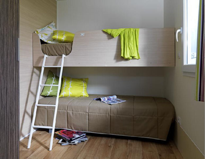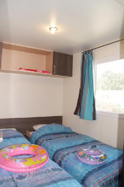 Pour avoir plus de détails et réserver cet hébergement, choisissez une date ci-dessus et cliquez sur voir l'offre ! Vous serez redirigé vers le site proposant la location.Mobil Home de 32m² environ pour 4/6 personnes, composé d'une kitchenette équipée, d'un séjour avec une banquette convertible en couchage pour 2 personnes, d'une chambre avec 2 lits simples (possibilité lit double), d'une chambre avec 2 lits superposés, d'une salle de bains avec une douche et un WC, et d'une terrasse couverte.Ancienneté : mobil-home de moins de 7 ans.Accès PMR : Ce mobil home est spécialement adaptée aux personnes à mobilité réduite : aménagement de la cuisine plus bas, salle de bains avec douche et WC adaptés, terrasse de plein pied avec rampe d'accès.