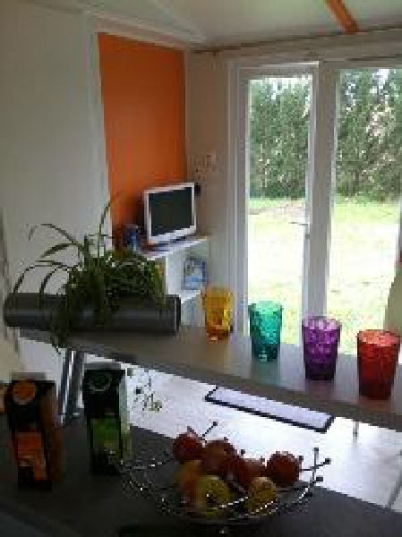Le mobil home est équipé d'une plaque de cuisson 4 feux, d'un réfrigérateur/congélateur, d'un micro-ondes, d'une cafetière et de tous les ustensiles de cuisine.Une télévision écran plat avec lecteur DVD est également à disposition.Les couvertures et oreillers sont fournis (draps jetables en option).La terrasse possède un salon de jardin.