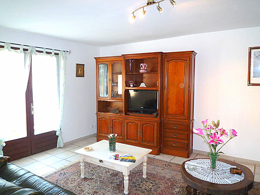 Villa 5 Pièces pouvant accueillir jusqu'à 8 personnes, de 120m², composé d'un salon, d'une salle à manger, d'une cuisine, d'une chambre avec un lit double et une salle de douche privatif, d'une chambre avec un clic-clac pour 2 personnes, de deux chambres avec un lit double chacune, d'une salle de bains et de WC indépendants.