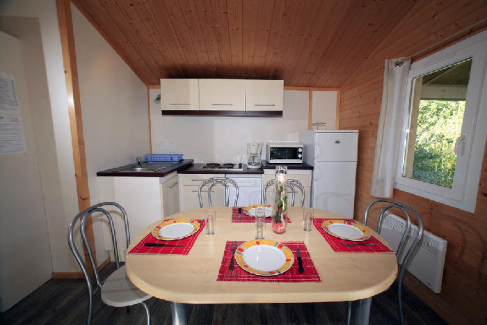 Pour avoir plus de détails et réserver cet hébergement, choisissez une date ci-dessus et cliquez sur voir l'offre ! Vous serez redirigé vers le site proposant la location.Chalet de 35m² pour 4 personnes composé d'une chambre avec un lit double, 1 chambre avec 1 lit superposé et un lit gigogne (possibilité de transformer en lit double), une salle à manger, d'une cuisine équipée, d'une salle de bain avec douche, lavabo et WC. Le logement dispose également d'une terrasse de 15m².
