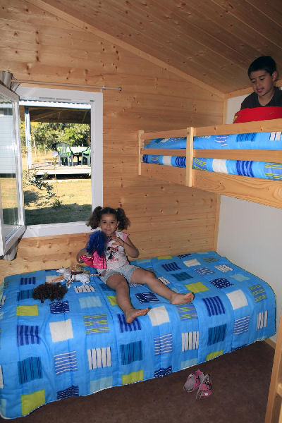 Pour avoir plus de détails et réserver cet hébergement, choisissez une date ci-dessus et cliquez sur voir l'offre ! Vous serez redirigé vers le site proposant la location.Chalet de 35m² pour 6 personnes, composé d'une chambre avec un lit double, d'une chambre avec 3 lits simples (un superposé, un en bas, un en tiroir), d'une cuisine équipée, d'un séjour très spacieux avec un canapé-lit pour 2 personnes, d'une salle de bains avec douche et lavabo et de WC indépendants.Le logement dispose également d'une terrasse de 15m².