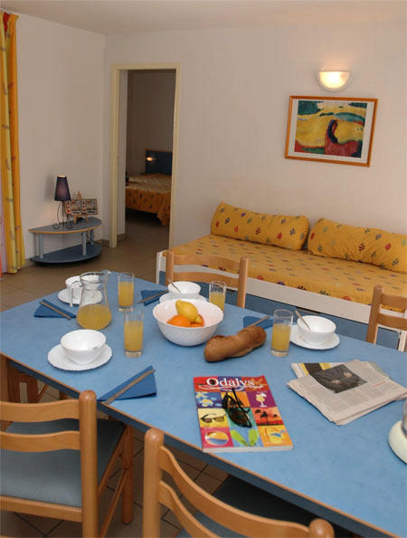 Appartement avec coin cuisine équipé : plaque vitrocéramique, micro-ondes, réfrigérateur, et lave-vaisselle.La Formule Escapade comprend : le linge de lit et de toilette, les lits faits à l'arrivée, la télévision et le ménage quotidien.
