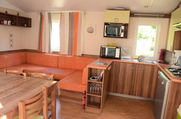 Pour avoir plus de détails et réserver cet hébergement, choisissez une date ci-dessus et cliquez sur voir l'offre ! Vous serez redirigé vers le site proposant la location.Situation : Sur l'Ile de Re, au coeur de la foret des Bragauds, entre Sainte Marie et Rivedoux Plage. A environ 800 m de la plage et 15 km du centre de La Rochelle. A 1 km des commerces de proximite et du Carrefour Market et U Express Camping : Sur un domaine de 1 ha, ambiance familiale. Mobil-homes avec terrasse, confortables et bien equipes. Piscine non couverte et chauffee du 30/03 au 30/09/2018 et diverses infrastructures de loisirs : aire de jeux pour enfants, mini-golf, tennis de table, terrain de beach volley, terrain de petanque. Egalement : food truck du 15/07 au 15/08 (2 fois / semaine), depot de pain en juillet / aout, Acces Wifi, Laverie.