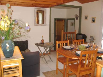 "appartement du Couronneau", apt 2 pièces 40 m2, au rez-de-chaussée, aménagement simple et fonctionnel: séjour/salle à manger 14 m2 avec table pour les repas, TV et chaîne stéréo. Sortie sur la terrasse. 1 chambre 8 m2 avec 1 grand-lit (140 cm). Galerie 5 m2 avec 1 couchage (2 x 90 cm). Coin cuisine (4 plaques de cuisson, mini-four, lave-vaisselle, plaque vitro céramique, four micro-ondes, cafetière électrique). Douche, WC séparé. Chauffage électrique. Terrasse 25 m2. Meubles de terrasse, barbecue, chaises longues (2). A disposition: lave-linge. Maximum 1 animal/ chien autorisé. Chauffage en sus du 1er octobre au 30/04, à payer sur place selon consommation.