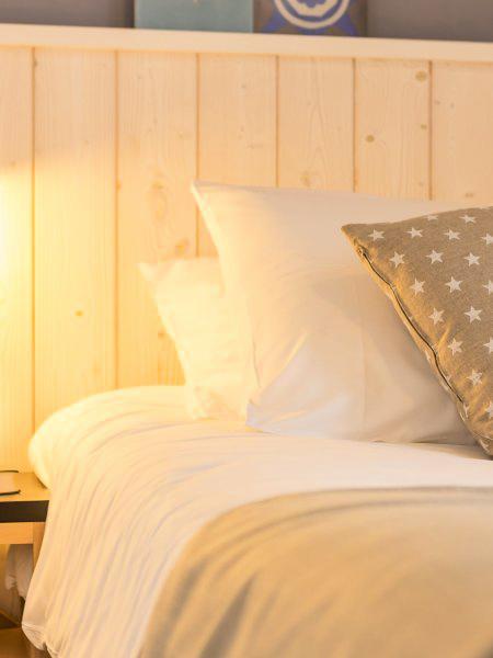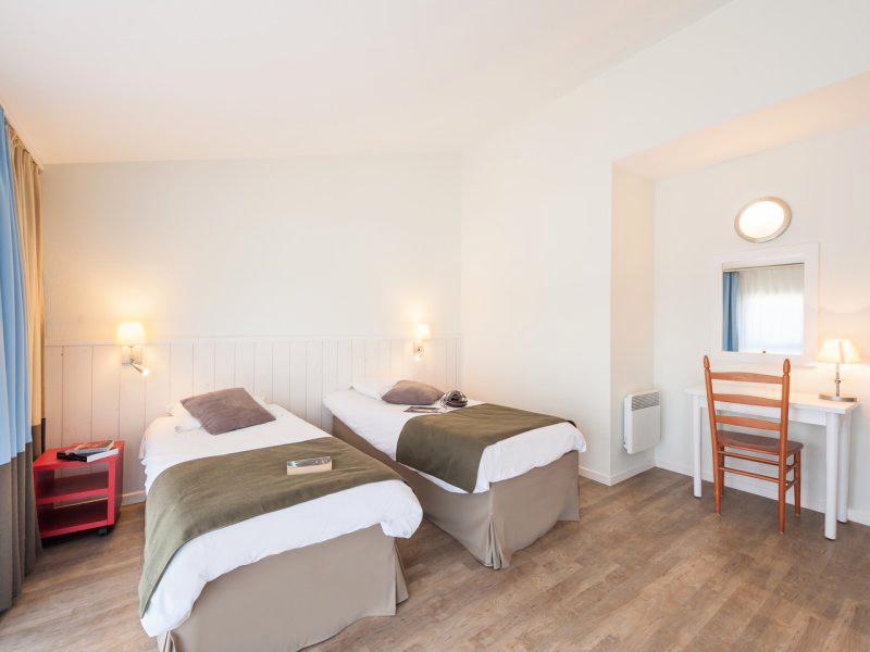 Appartement de deux pièces pour quatre ou cinq personnes de 44 à 48m² comprenant un séjour avec une banquette clic-clac, une chambre avec deux lits jumeaux, un coin nuit séparé de la chambre par des rideaux avec un lit armoire, deux salles de bains et des toilettes séparés dans la plupart des appartements.A noter : Certains appartements n'ont qu'une salle de bains.