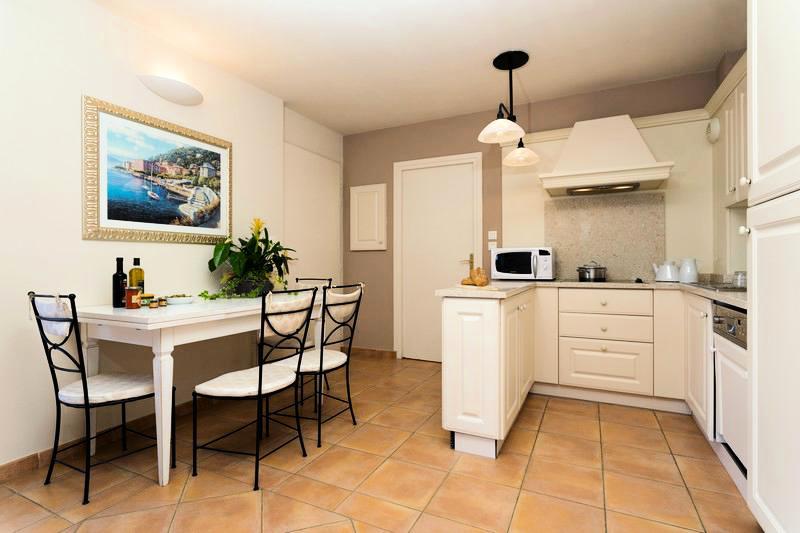 L'appartement est équipé de plaques de cuisson vitrocéramiques, d'un réfrigérateur, d'un lave-vaisselle, d'un micro-ondes, d'une bouilloire, d'un grille-pain, d'une cafetière ainsi que de tous les ustensiles de cuisine nécessaires pour 6 personnes.