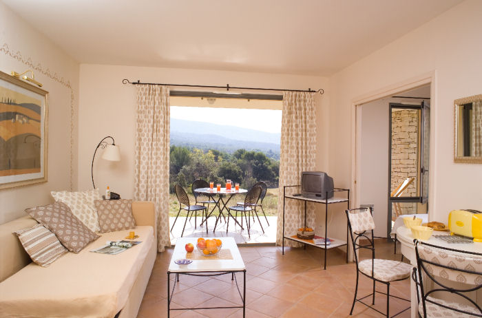 Pour avoir plus de détails et réserver cet hébergement, choisissez une date ci-dessus et cliquez sur voir l'offre ! Vous serez redirigé vers le site proposant la location.Situé au coeur du Luberon, entre la magnifique ville de l'Isle-sur-la-Sorgue, rurale et chargée d'histoire, se trouve le paisible Domaine de Provence Country Club****. Entouré d'un terrain de golf vallonnée de 18 trous et par une spectaculaire campagne environnante, l'endroit est idéal pour passer des vacances en toute détente. Un restaurant, une immense piscine, un terrain de tennis et un complexe fitness sont également à disposition. Au coeur du Lubéron, les appartements du Domaine de Provence Country Club sont idéalement situés, donnant directement sur le Golf de Saumane. Avec leurs teintes pastel, les bâtiments du site sont de style provençal traditionnel, et comprennent des appartements pouvant accueillir entre quatre et huit personnes. Ces appartements offrent une prestation de service haut de gamme. Ils disposent chacun d?une grande terrasse ou d'un balcon fleuri ou bien d?un rez-de-jardin, tous équipés de mobiliers de jardin, parfait pour profiter des journées ensoleillées, en écoutant le champs des cigales. Pour vous rafraichir, une grande piscine extérieure est accessible, au calme avec la vue sur le golf. Si de nombreuses attractions touristiques sont à proximité de l'établissement, l?environnement de la Résidence Provence Country Club reste néanmoins propice au repos, à la détente et au calme et conviendra aux amoureux de la nature et du golf. Les appartements sont confortables et décorés avec goût. Bien agencés, ils sont lumineux et spacieux avec leurs grandes porte-fenêtres. Chaque cuisine est moderne et ouverte, toute équipée avec four traditionnel, micro-ondes, réfrigérateur et lave-vaisselle. Le séjour est agréable et dispose d'une TV écran plat. Les logements disposent tous d?un grand balcon ou d?une terrasse privée avec mobilier de jardin. Des livres ainsi que des jeux de société sont à votre disposition pour égayer vos soirées. Dans les chambres, vous disposerez de linge de qualité avec de couettes. Les lits sont faits à l?arrivée et les serviettes sont fournies. Enfin, bénéficiez d?un panier d?accueil, de croissants livrés le 1er matin et de boissons fraîches à votre arrivée. Les ménages mi-séjour et fin de séjour sont inclus dans la réservation. Le wifi est gratuit dans les logements ; vous pouvez vous garer facilement ; et une laverie est à votre disposition également. La piscine de la résidence est accessible aux clients, avec transats et pataugeoire pour les petits. Les clients ont aussi accès gratuitement aux cours du tennis, le practice du golf (seau de balles payant). Accès au golf 18 trous est réservé aux initiés, des stages et initiations au golf sont proposés aux clients (avec supplément). Possibilité de location de vélos électriques sur place.