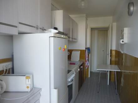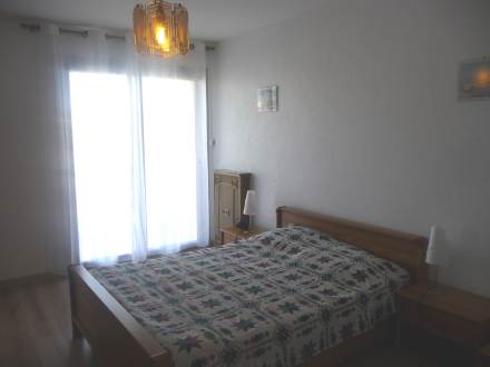Apt 2 pièces 60 m2 au 3ème étage, aménagement fonctionnel: séjour/salle à manger avec 1 x 2 lits superposés, Télévision numérique et DVD. Sortie sur la terrasse. 1 chambre avec 1 grand-lit. Cuisine (4 plaques de cuisson, four, lave-vaisselle, four micro-ondes, congélateur, cafetière électrique). Salle de bains, WC séparé. Terrasse 12 m2. Meubles de terrasse. Vue latérale sur la mer et les montagnes. A disposition: lave-linge. Place de parking No 75.
