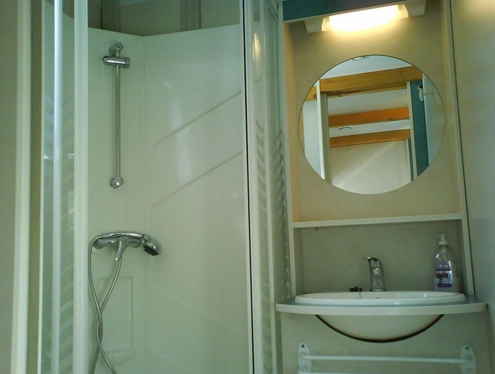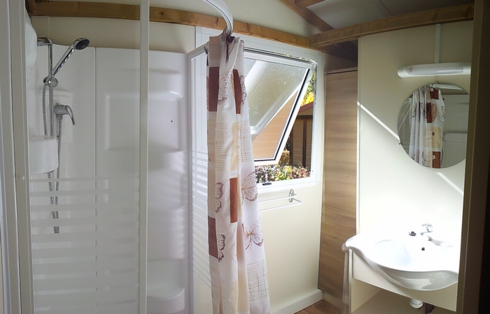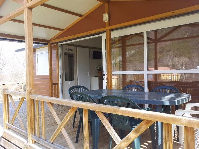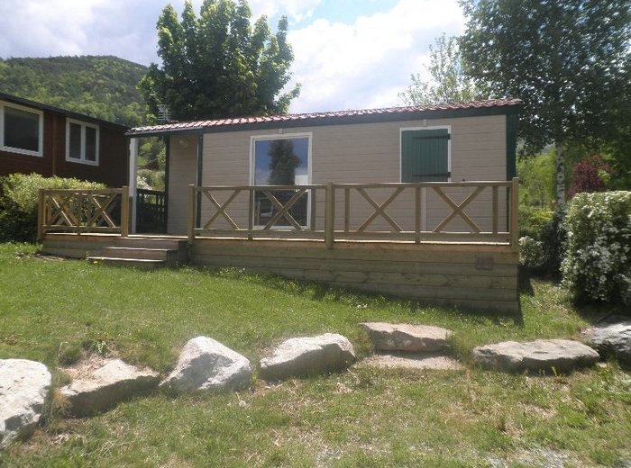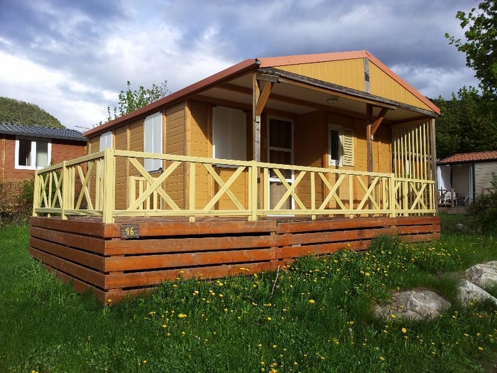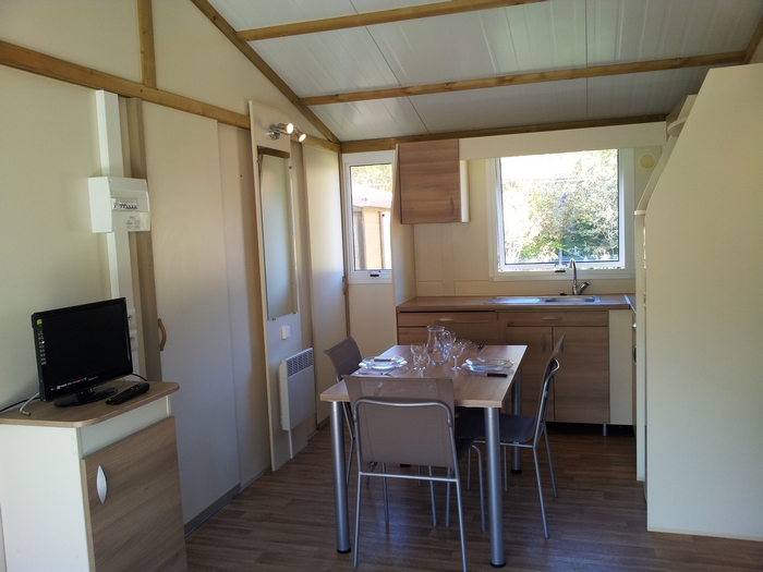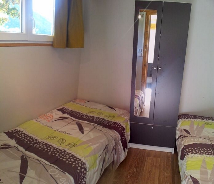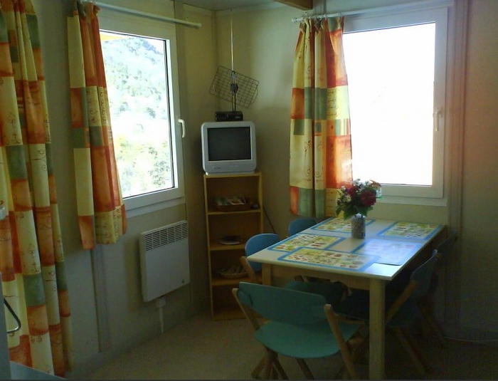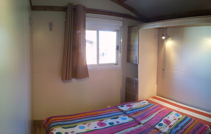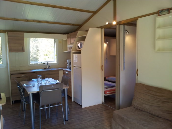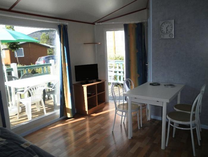 Pour avoir plus de détails et réserver cet hébergement, choisissez une date ci-dessus et cliquez sur voir l'offre ! Vous serez redirigé vers le site proposant la location.Chalet 4 Pièces 6 Personnes de 35m² composé d'un coin cuisine équipé, d'un salon, d'une chambre avec 1 lit double, d'une chambre avec 2 lits simples, d'une chambre avec 2 lit superposés, d'une salle de bain et de WC séparés. Terrasse couverte.