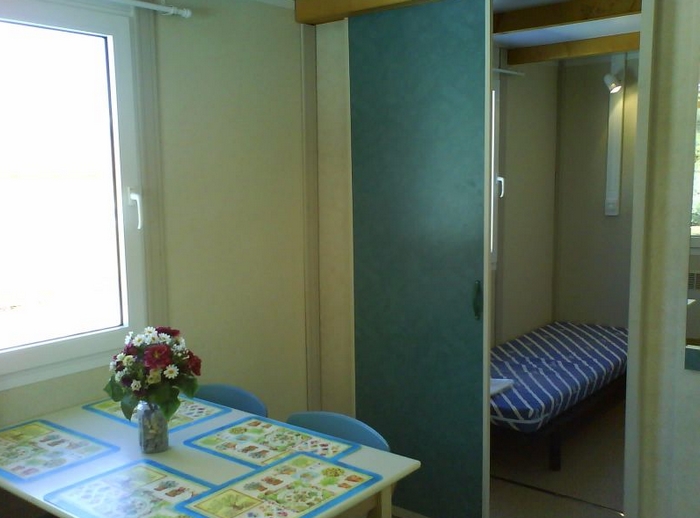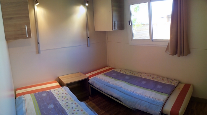 Pour avoir plus de détails et réserver cet hébergement, choisissez une date ci-dessus et cliquez sur voir l'offre ! Vous serez redirigé vers le site proposant la location.Bungalow Toilé 3 Pièces 5 Personnes de 25m² composé d'un coin cuisine équipe, d"un coin salon, d'une chambre avec 1 lit double, d'une chambre avec lits superposés et 1 lit simple, d'une salle de bain et de WC séparés. Terrasse couverte.