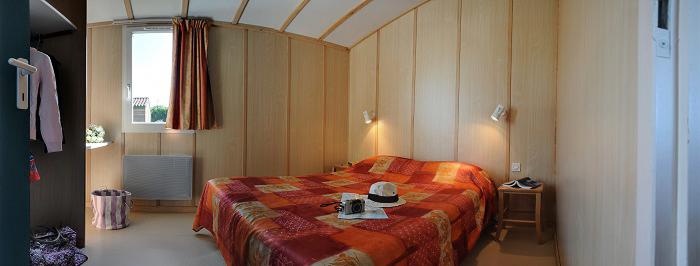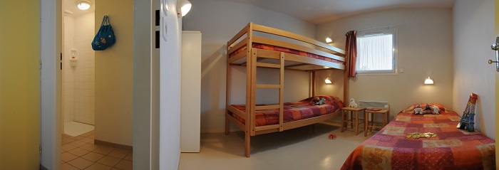 Chalet 3 pièces de 40m² pour 4 personnes composé d'un séjour, 1 chambre avec 1 grand lit, 1 chambre avec 2 lits simples, salle d’eau (douche, lavabo), WC indépendants. Kitchenette équipée. Terrasse. Logement rénové en 2014. Possibilité d'ajouter un lit bébé : sur demande auprès de notre service réservation