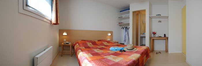 Appartement de 50m² pour 5 personnes composé d'un séjour, d'une chambre avec 1 grand lit (160), d'une chambre avec 1 lit simple plus 2 lits superposés, d'une salle d'eau par chambre et de WC indépendants. Kitchenette équipée. Terrasse. Logement rénové en 2014. Possibilité d'ajouter un lit bébé : sur demande auprès de notre service réservation