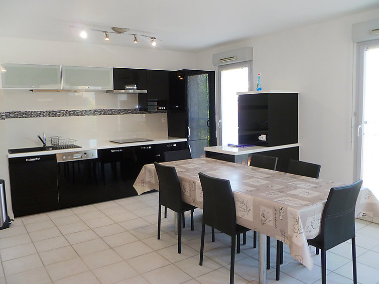 Apt 3 pièces 65 m2 au 2ème étage, aménagement agréable et moderne: séjour/salle à manger avec table pour les repas, TV et chaînes de TV internationales (écran plat), DVD. Sortie sur la terrasse. 1 chambre avec 1 grand-lit (1 x 160 cm, longueur 200 cm). 1 chambre avec 2 lits (90 cm, longueur 200 cm). Grande cuisine ouverte (lave-vaisselle, 3 plaques à induction, congélateur, cafetière électrique, combiné micro-ondes). Salle de bains, WC séparé. Chauffage électrique. Petite terrasse 4 m2, situation ouest. Meubles de terrasse. A disposition: lave-linge, fer à repasser. Internet (Connexion WIFI). Place de parking No 9 en sous sol. Veuillez noter: logement côté rue.