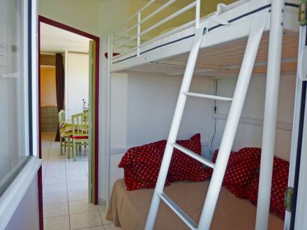 Pour avoir plus de détails et réserver cet hébergement, choisissez une date ci-dessus et cliquez sur voir l'offre ! Vous serez redirigé vers le site proposant la location.Apt 2 pièces 33 m2 au 3ème étage: séjour/salle à manger avec 1 divan-lit double, TV, chaîne stéréo et DVD. Sortie sur la terrasse. 1 chambre avec 1 grand-lit. Cuisine ouverte (four, lave-vaisselle, plaque vitro céramique, four micro-ondes). Salle de bains, WC séparé. Chauffage. Grande terrasse 45 m2, terrasse 10 m2. Meubles de terrasse, barbecue électrique, chaises longues. Belle vue éloignée sur la mer et les alentours. A disposition: lave-linge. Garage, hauteur 180 cm, largeur 240 cm.