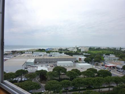 Studio 18 m2 au 10ème étage: séjour/salle à manger avec 1 grand-lit armoire et TV. Coin cuisine (2 plaques de cuisson, mini-four). Bain/WC. Air-conditionné. Terrasse couverte, situation sud-ouest. Meubles de terrasse. Vue sur la mer. Place de parking.