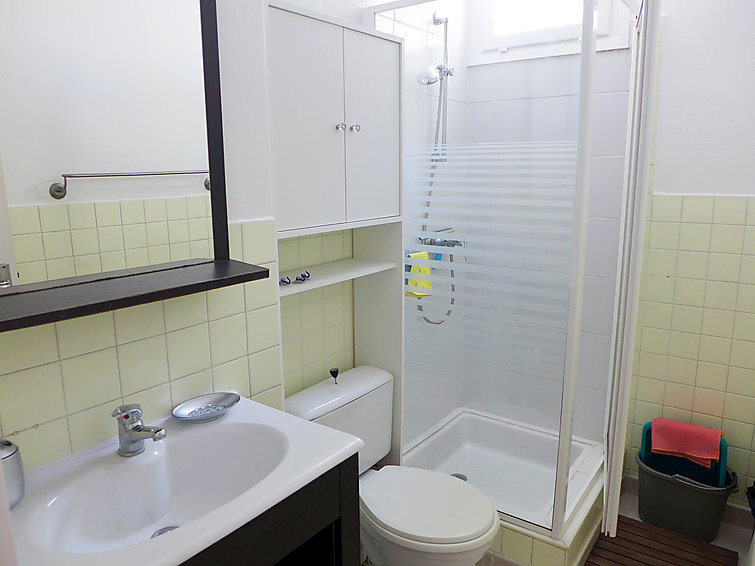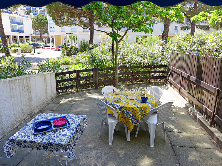 Studio 22 m2, au rez-de-chaussée. Séjour/salle à manger avec 1 divan-lit double (140 cm), 1 x 2 lits superposés (80 cm), TV (écran plat). Coin cuisine (2 plaques de cuisson, four, four micro-ondes, congélateur). Douche/WC. Terrasse 10 m2. Meubles de terrasse. Veuillez noter: logement côté rue. Pas de parking.