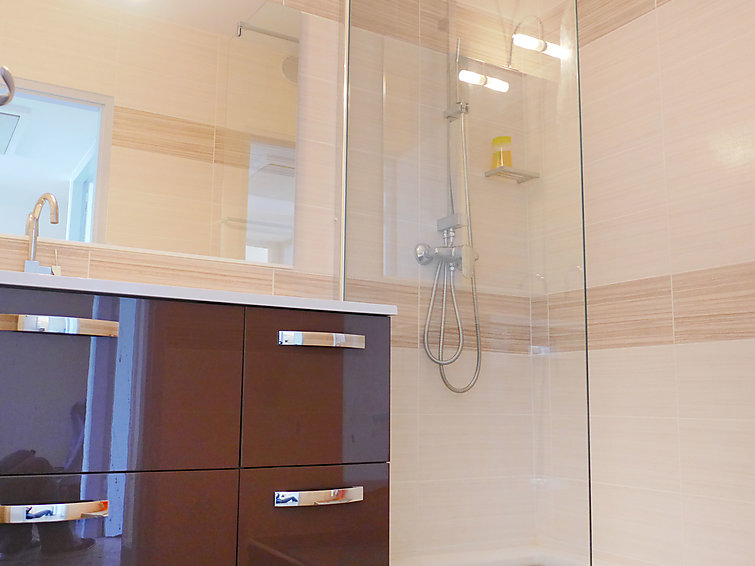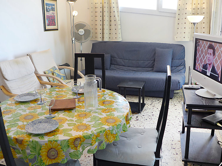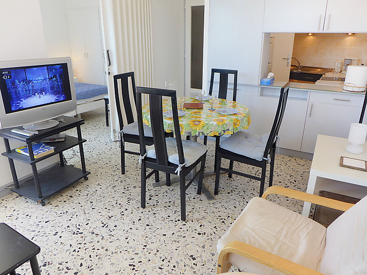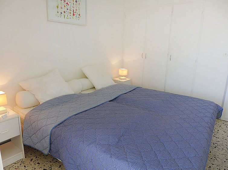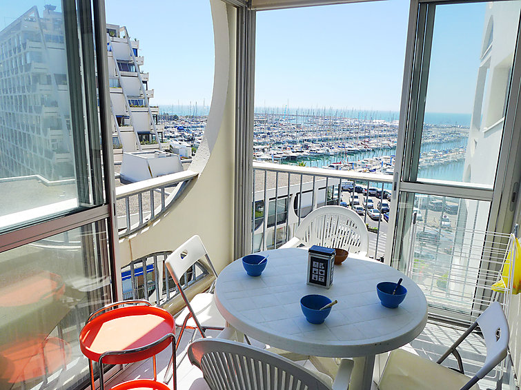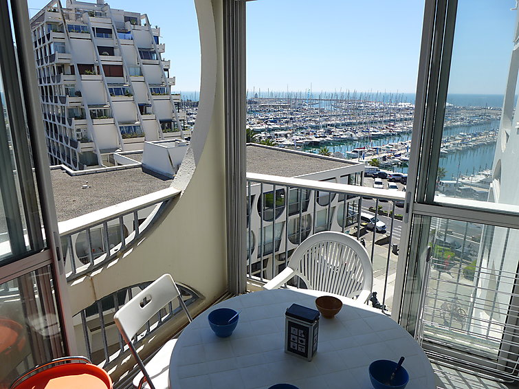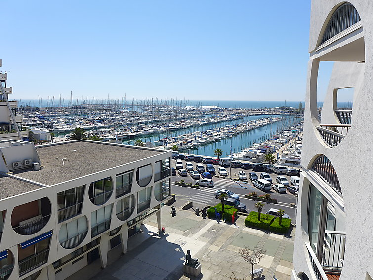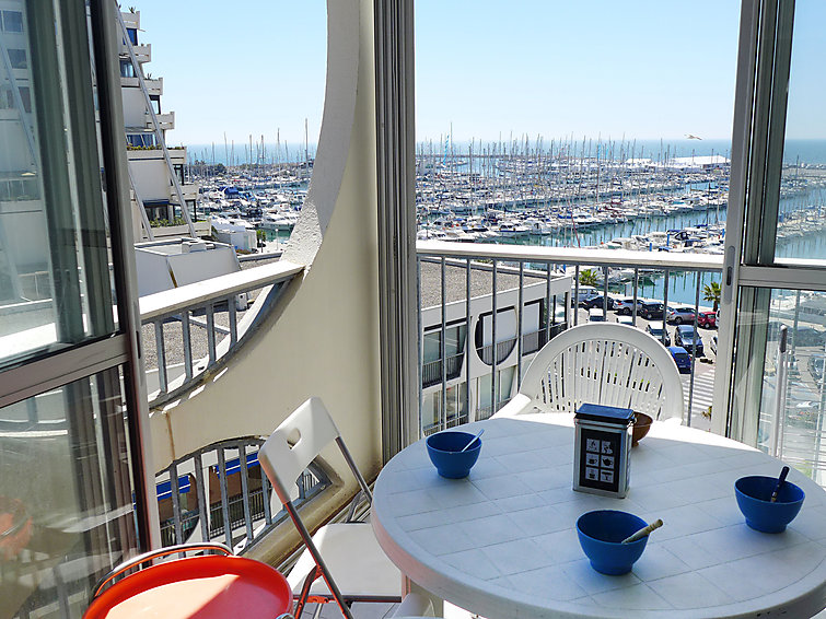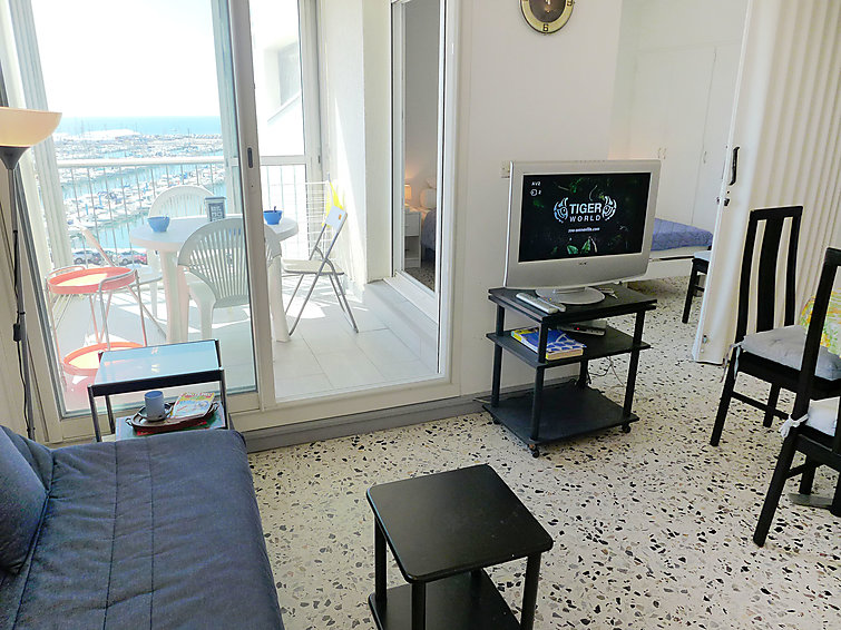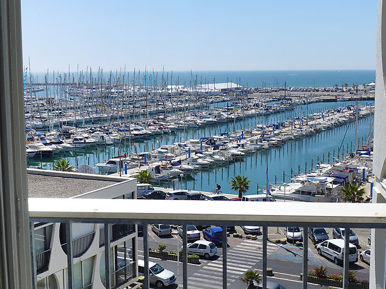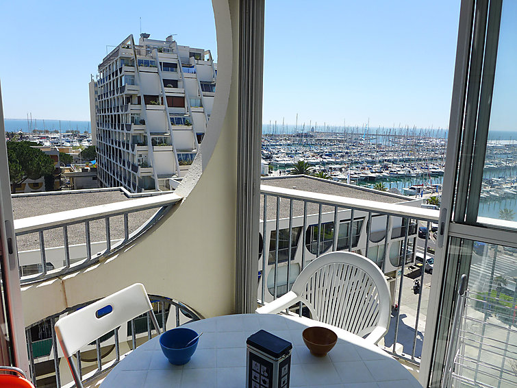 Apt 2 pièces 48 m2 au 5ème étage. Aménagement agréable: séjour/salle à manger avec 1 divan-lit double (140 cm), TV (écran plat). 1 chambre avec 2 lits (90 cm). Petite cuisine (four, lave-vaisselle, 4 plaques vitrocéramique, four micro-ondes, congélateur). Douche, WC séparé. Terrasse couverte, situation sud-est. Meubles de terrasse. Belle vue panoramique sur la mer et le port. A disposition: lave-linge. Place de parking près de la maison.