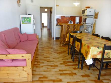 Pour avoir plus de détails et réserver cet hébergement, choisissez une date ci-dessus et cliquez sur voir l'offre ! Vous serez redirigé vers le site proposant la location.2/3 pièces 6/7 personnes de 62 m² environ composé d'un séjour avec convertible 2 places + un fauteuil 1 place, d'une chambre avec 1 lit double (160), d'une seconde chambres avec 2 lits superposés (dont 1 avec 3 couchages), d'une kitchenette équipée et de salles de douche (dont 1 avec WC) et de WC séparés.