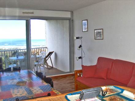 Pour avoir plus de détails et réserver cet hébergement, choisissez une date ci-dessus et cliquez sur voir l'offre ! Vous serez redirigé vers le site proposant la location.2 pièces 4 personnes Vue Mer. Séjour avec canapé-lit gigogne pour 2 personnes. Cuisine équipée. Chambre avec lit double. Salle de douche et WC.
