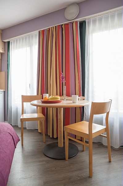 Pour avoir plus de détails et réserver cet hébergement, choisissez une date ci-dessus et cliquez sur voir l'offre ! Vous serez redirigé vers le site proposant la location.La résidence Centre est située à la Rochelle, à proximité du vieux port dans le quartier du bastion Saint-Nicolas. Les commerces se trouvent à 200m, et une plage est accessible à pied en 15 minutes. Sur place, une piscine intérieure chauffée est à votre disposition. LES APPARTEMENTS Tous les appartements de votre résidence de vacances sont entièrement équipés. Chambre 2 personnes (entre 18 à 20 m²) : 1 chambre avec un lit double, 1 salle de bains et 1 WC, 1 coin cuisine Studio 4 personnes ( environ 22 m²) : 1 séjour avec 1 canapé-lit double, 1 coin cabine avec 2 lits supersposés, 1 coin cuisine, 1 salle de bain et 1 WC. A noter : le couchage en hauteur ne convient pas à des enfants de moins de 6 ans. Décret n° 95 949 du 25/08/1995 SERVICES INCLUS - Piscine couverte chauffée - Linge de lit - Linge de toilette - WiFi dans les appartements - Kit d'entretien - Ménage en fin de séjour - Service de prêt (Fers et planches à repasser, sèche cheveux, protège-prises, barrière de lit, bouilloire, grille-pains, jeux de société, bandes dessinées, livre de poche, jeux de société...) - Découvertes locales (mai, juin, septembre et octobre) SERVICES PAYANTS (tarifs sur demande) - Ménage en cours de séjour - Animaux domestiques admis - Emplacement Préférentiel - WiFi à la réception - Parking - Kit bébé - Laverie - Lits faits à l'arrivée