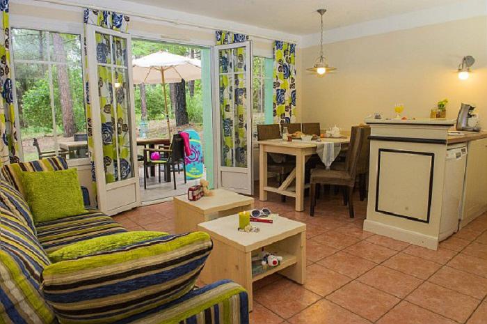 La maison comprend une cuisine équipée avec des plaques de cuisson vitrocéramiques, un réfrigérateur, un lave vaisselle et une machine à café Senseo. Vaisselle et ustensiles pour 8 personnes.Terrasse ou balcon.A noter : - Ces appartements catégorie VIP ont un emplacement privilégié dans le village club, possède une literie haut de gamme et 2 TV avec lecteur DVD.- Le couchage en hauteur ne convient pas aux enfants de moins de 6 ans.