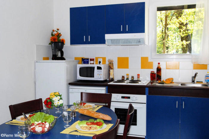 Maison de 3 pièces de 50m² environ pour 6 personnes composée d'un séjour avec un canapé-lit convertible pour 2 personnes, d'une chambre avec 1 lit double, d'une autre avec 2 lits superposés, d'un coin cuisine équipé, d'une salle de bains ou salle d'eau avec WC. Terrasse. Certains logements sont en duplex.
