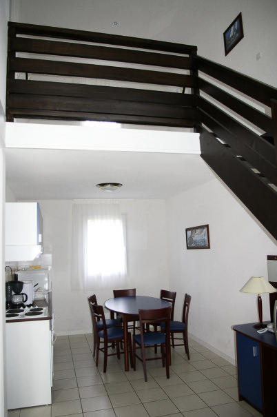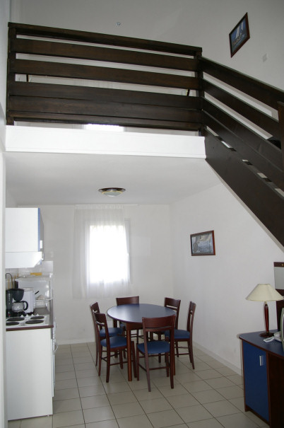 Maison de 4 pièces de 60m² environ pour 8 personnes composée d'un séjour avec un canapé-lit convertible pour 2 personnes, d'une chambre avec 1 lit double, d'une autre avec 2 lits superposés, d'une mezzanine avec 2 lits jumeaux, d'un coin cuisine équipé, d'une salle de bains avec WC et d'une petite salle d'eau avec douche et WC. Terrasse. Certains logements sont en duplex.
