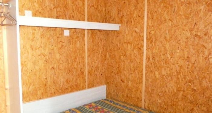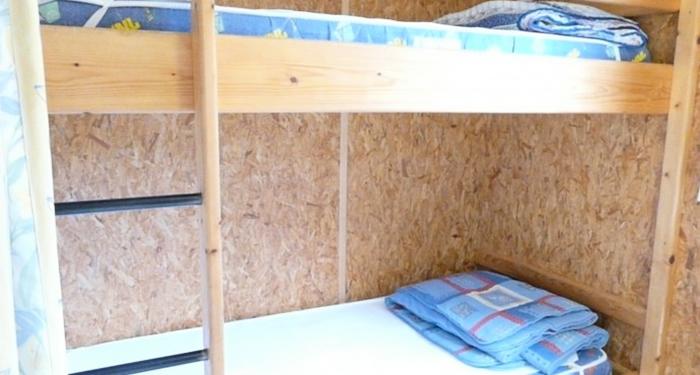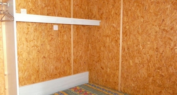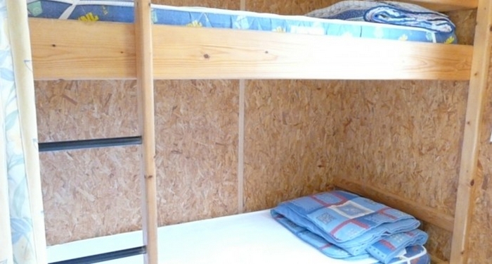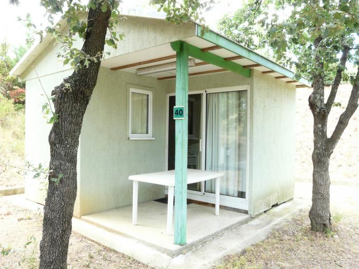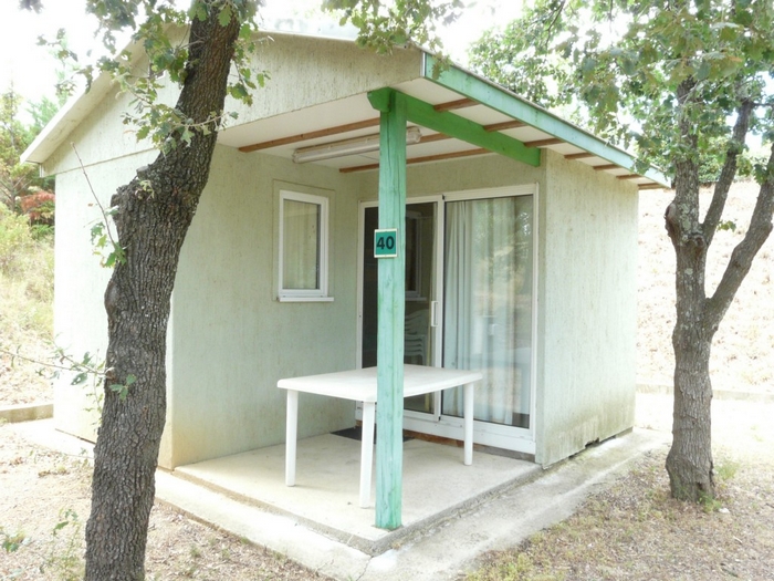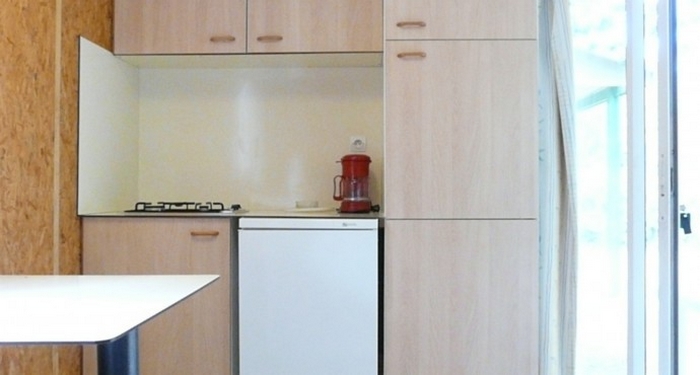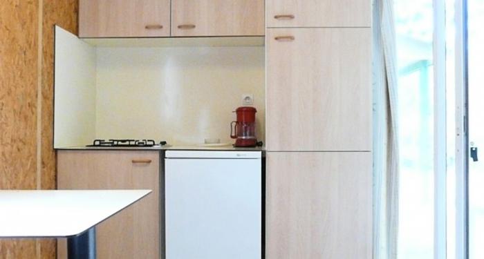 Chalet Nature 3 Pièces 4 Personnes d'environ 17m² composé d'un coin salon, d'un coin cuisine équipé (sans évier), d'une chambre avec 1 lit double, d'une chambre avec 2 lits simples. Terrasse ombragée. A noter: Ce logement ne dispose pas de sanitaires.