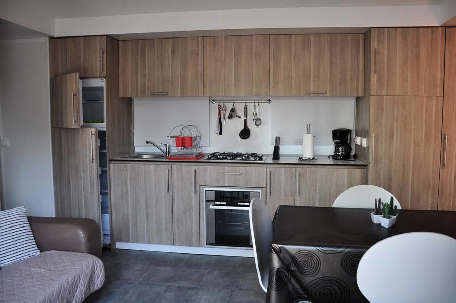 Le mobil home comprend un coin cuisine équipé avec réfrigérateur, plaques de cuisson, cafetière électrique, ustensiles de cuisine et vaisselle adaptée au nombre de personnes.