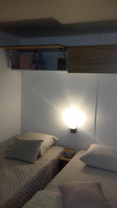 Pour avoir plus de détails et réserver cet hébergement, choisissez une date ci-dessus et cliquez sur voir l'offre ! Vous serez redirigé vers le site proposant la location.Mobil Home 4 Pièces 6 Personnes d'environ 40m² composé d'un coin salon, d'un coin cuisine équipé, d'une chambre avec 1 lit double (160) , de 2 chambres avec 2 lits simples chacune (80), de 2 salles de bain dont 1 dans la chambre double.