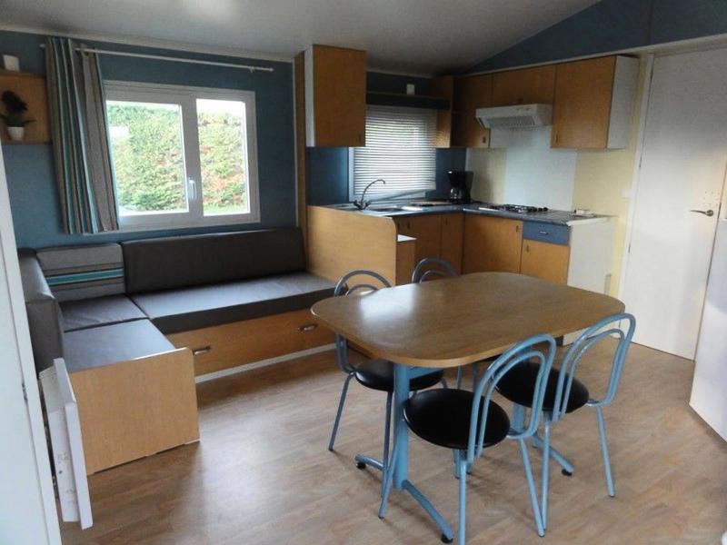 Le Mobil Home comprend un coin salon avec télévision, un coin cuisine équipé avec réfrigérateur, four, ustensiles de cuisine et vaisselle adaptée au nombre de personnes dans le logement. La terrasse dispose d'un salon de jardin.