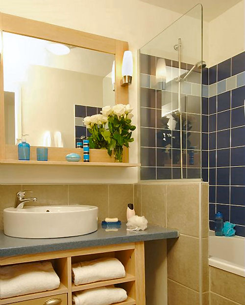 Appartement de 2 pièces pour 4 à cinq personnes de 30 à 32m², composé d'un séjour avec deux banquettes-lits simples, d'une chambre avec un lit double, d'un coin cuisine tout équipé et d'une salle de bain avec baignoire et de WC séparé.