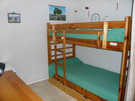 Pour avoir plus de détails et réserver cet hébergement, choisissez une date ci-dessus et cliquez sur voir l'offre ! Vous serez redirigé vers le site proposant la location.Apt 2 pièces 25 m2 au 2ème étage, situation sud. Séjour/salle à manger avec 1 divan-lit double (140 cm, longueur 190 cm), TV. 1 chambre avec rideau avec 1 x 2 lits superposés (90 cm, longueur 190 cm). Coin cuisine (2 plaques de cuisson, mini-four, four micro-ondes). Douche, WC séparé. Chauffage électrique. Meubles de terrasse, loggia. A disposition: Internet (Connexion WIFI, en sus). Place de parking. Veuillez noter: maximum 1 animal/ chien autorisé. Détecteur de fumée.