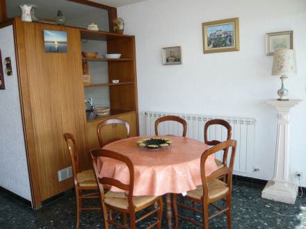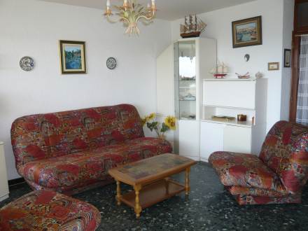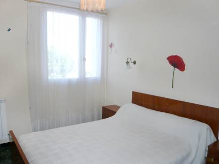 Apt 3 pièces 60 m2 au 2ème étage: séjour/salle à manger avec 1 divan-lit double, TV et DVD. 2 chambres, chaque chambre avec: 1 grand-lit. Coin cuisine (4 plaques de cuisson, mini-four, four, lave-vaisselle, four micro-ondes, congélateur). Douche, WC séparé. Chauffage. Balcon 9 m2, situation sud-ouest. Meubles de terrasse. Vue latérale sur la mer. A disposition: lave-linge. Place de parking.