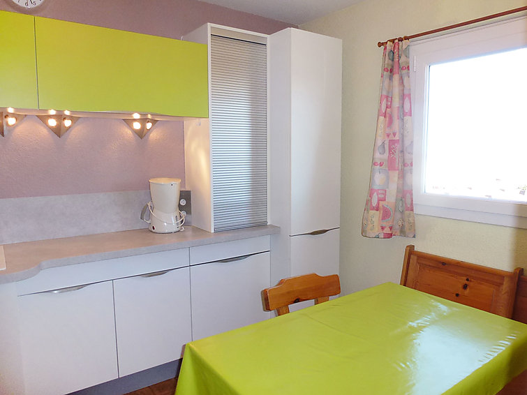 Pour avoir plus de détails et réserver cet hébergement, choisissez une date ci-dessus et cliquez sur voir l'offre ! Vous serez redirigé vers le site proposant la location.Apt 2 pièces 30 m2, au rez-de-chaussée. Séjour/salle à manger avec TV. 1 chambre avec 1 grand-lit (140 cm, longueur 190 cm). Entrée avec 1 x 2 lits superposés (90 cm, longueur 180 cm). Coin cuisine (2 plaques de cuisson, four micro-ondes). Douche/WC. Chauffage électrique. Terrasse 4 m2, situation sud-ouest. Meubles de terrasse. A disposition: Internet (Connexion WIFI, en sus). Place de parking. Veuillez noter: maximum 1 animal/ chien autorisé. Détecteur de fumée.