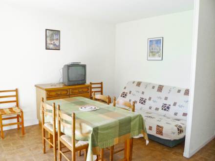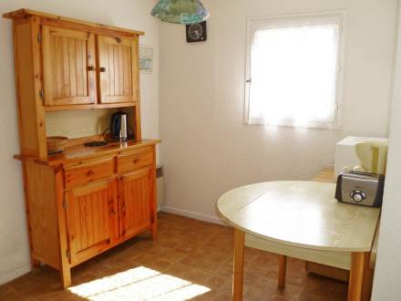 Pour avoir plus de détails et réserver cet hébergement, choisissez une date ci-dessus et cliquez sur voir l'offre ! Vous serez redirigé vers le site proposant la location.Apt 2 pièces 30 m2, au rez-de-chaussée: séjour/salle à manger avec TV. 1 chambre avec 1 grand-lit. Entrée avec 1 x 2 lits superposés. Coin cuisine (2 plaques de cuisson, four micro-ondes). Douche/WC. Chauffage électrique. Terrasse 4 m2, situation sud-ouest. Meubles de terrasse. Place de parking. Maximum 1 animal/ chien autorisé.