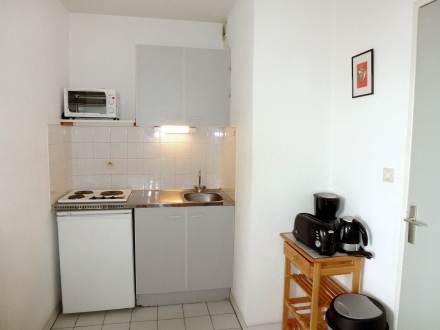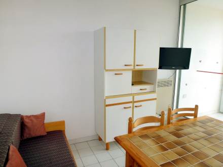 Pour avoir plus de détails et réserver cet hébergement, choisissez une date ci-dessus et cliquez sur voir l'offre ! Vous serez redirigé vers le site proposant la location.Studio 20 m2 au 1er étage. Séjour/salle à manger avec 1 divan-lit double, TV et DVD. Entrée avec 1 x 2 lits superposés (70 cm). Coin cuisine (mini-four, 2 plaques vitrocéramique, four micro-ondes, congélateur). Douche, WC séparé. Chauffage électrique. Terrasse 6 m2, couverte, situation est. Meubles de terrasse. Place de parking.