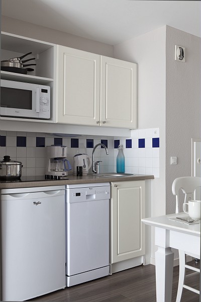 La cuisine de cet appartement est équipé de 4 plaques électriques, d'un réfrigérateur, d'un micro ondes grill, d'un lave-vaisselle et d'une cafetière. Également à disposition un téléphone (payant), une télévision. Terrasse ou balcon avec mobilier de jardin. Chaque couchage est équipé de couvertures et d'oreillers.