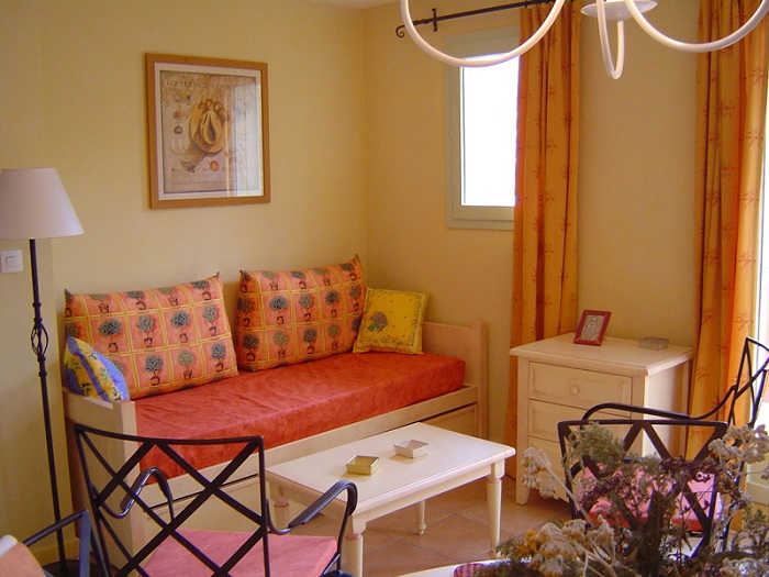 Appartement pour 4 à 6 personnes de 30-35m², composé d'un séjour avec un canapé double convertible ou d'une banquette-lit gigogne 2 personnes, d'une chambre double et d'une cabine avec lits superposés (couchages pour personnes de moins de 1m80), d'une kitchenette équipée, d'une salle de bain avec WC. Balcon ou terrasse.