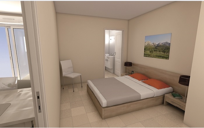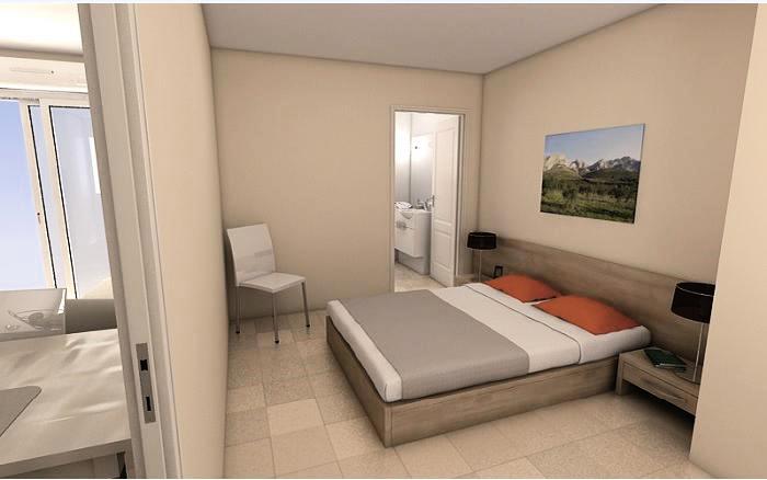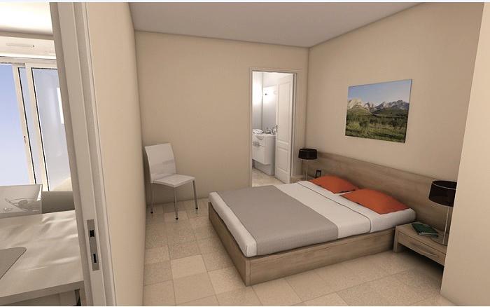 Appartement 2 pièces pour 2 à 4 personnes, de 30 à 34m² composé d'un séjour avec 2 couchages, d'une kitchenette équipée, d'une chambre avec 2 couchages, d'une salle de bains ou de douche avec WC.