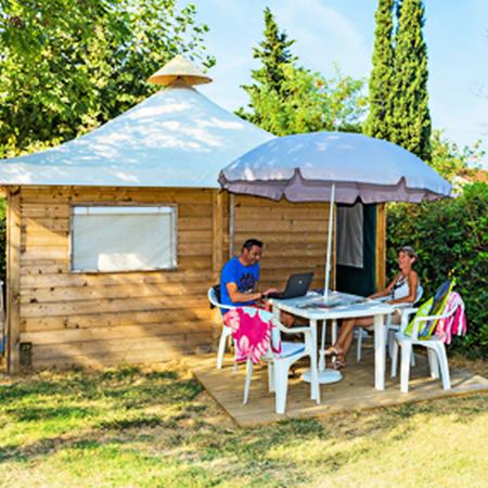 Pour avoir plus de détails et réserver cet hébergement, choisissez une date ci-dessus et cliquez sur voir l'offre ! Vous serez redirigé vers le site proposant la location.Ce petit camping de charme se trouve entre Toulon et Hyères dans le village du Pradet à seulement 3000m des plages préservées. Vous profiterez sur place d'une piscine chauffée bordée de plages en gazon où l'on peut venir bronzer sur des transats en bambou. En juillet et août, le camping propose des animations pour les enfants sous forme d'ateliers tous les jours. Pour occuper les grands, des activités plus sportives sont au programme ou encore des balades et visites.Pour faciliter votre séjour, un service de snack-bar vous est proposé en juillet et août et les premiers commerces se trouvent à moins de 300 mètres.