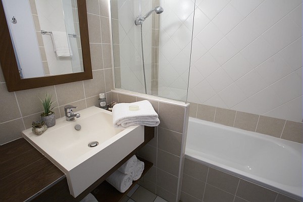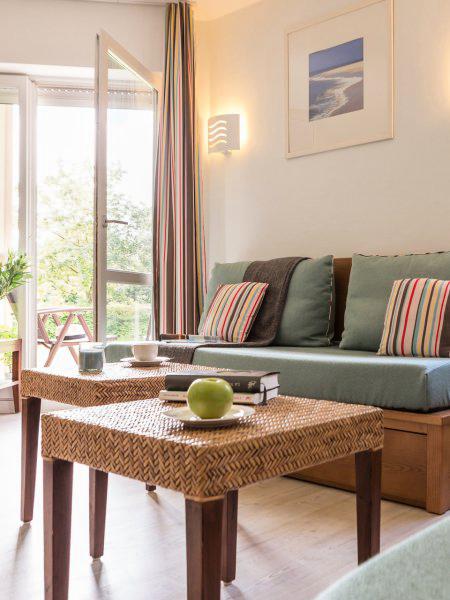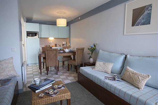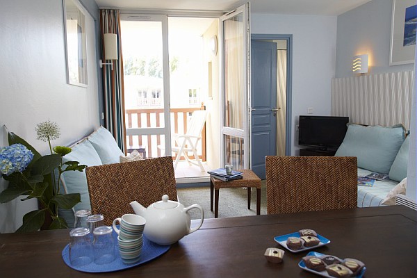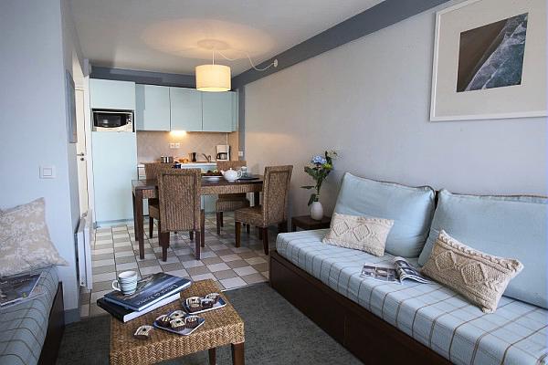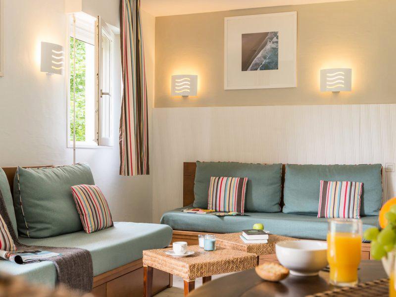 Appartement de deux pièces pour quatre ou cinq personnes de 43 à 46m² comprenant un séjour avec un canapé lit double, une chambre avec trois lits simples, une salle de bains et des toilettes séparés.A noter : certains de ces appartements sont adaptés aux personnes à mobilité réduite.