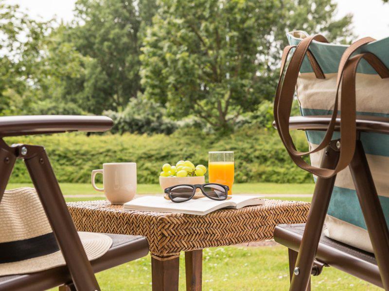 Le coin cuisine comprend un réfrigérateur, des plaques de cuisson vitrocéramiques, une cafetière, un lave-vaisselle et un four à micro-ondes. L'appartement dispose également d'une télévision et d'un mobilier de jardin.