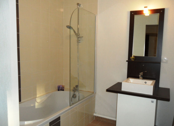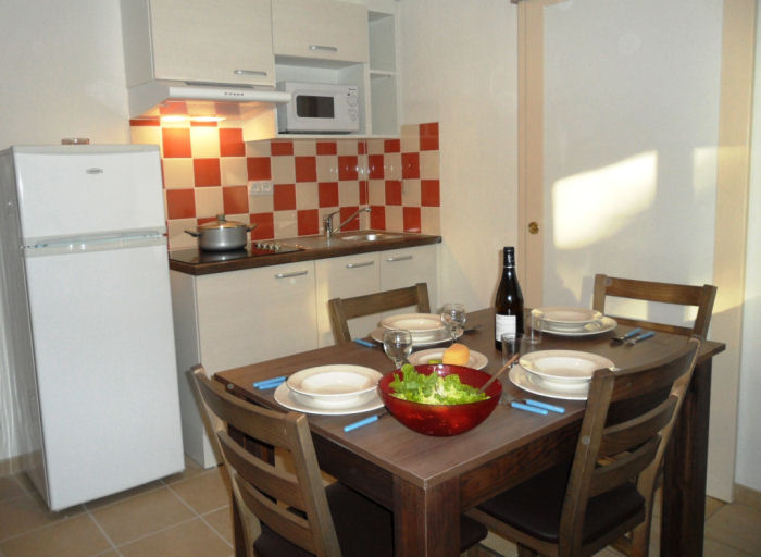 2 Pièces 4 pers. (27 m²) : un séjour avec canapé lit de 140x190 cm et une chambre avec un lit double 140x190 cm. séjour avec TV/TNT et accès-internet, coin cuisine avec réfrigérateur, micro-ondes, plaques vitrocéramiques et hotte aspirante, cafetière électrique et bouilloire. Salle de bain avec baignoire et wc intégré.
