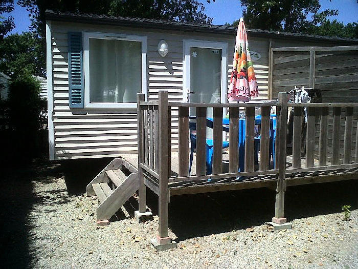 Pour avoir plus de détails et réserver cet hébergement, choisissez une date ci-dessus et cliquez sur voir l'offre ! Vous serez redirigé vers le site proposant la location.Mobil home 3 pièces 4 personnes avec : Salon Coin cuisine équipé 1 chambre avec un lit double, 1 chambre avec 2 lits simples Salle de douche, WC Terrasse bois