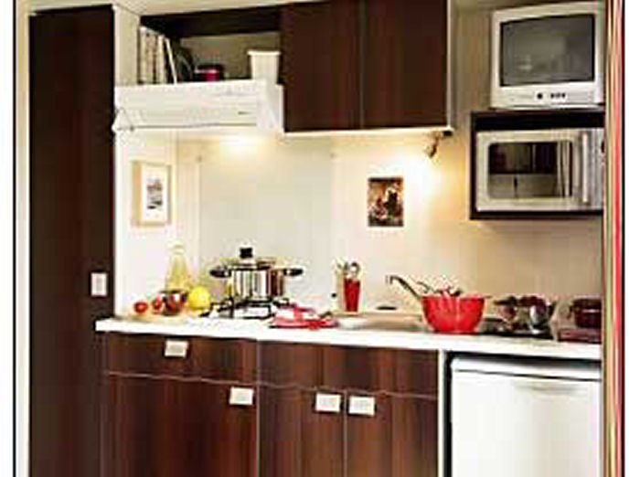Dans la cuisine vous trouverez un frigo top, une plaque 2 feux, des placards, de la vaisselle et l'ensemble des ustensiles de cuisine.