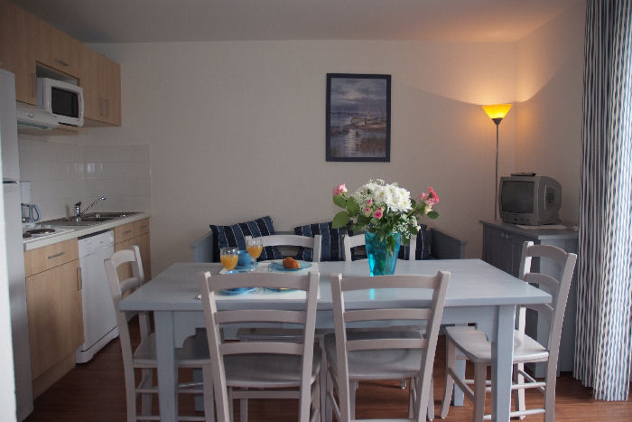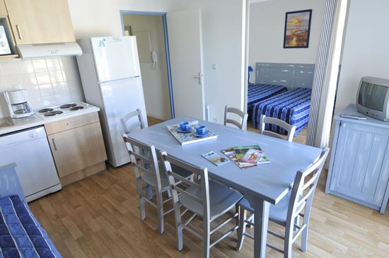 Pour avoir plus de détails et réserver cet hébergement, choisissez une date ci-dessus et cliquez sur voir l'offre ! Vous serez redirigé vers le site proposant la location.Appartement de 40 à 44m² pour 4/6 personnes, composé d'un séjour avec banquette-lit gigogne, d'un coin cuisine équipé, d'une chambre avec 1 lit double, d'une seconde chambre avec 2 lits simples, d'une salle de bain avec baignoire, d'un WC séparé pour la plupart des appartements ainsi qu'une terrasse ou balcon.