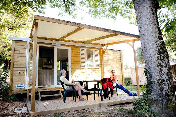 Mobil home de 20m² pouvant accueillir jusqu'à 4 personnes, composé d'une pièce de vie avec banquette, d'une kitchenette équipée, d'une chambre avec un lit double, d'une chambre avec 2 lits simples, d'une salle de douche et de WC séparés. Il dispose également d'une terrasse.