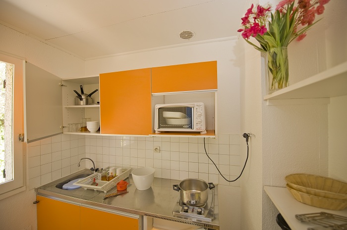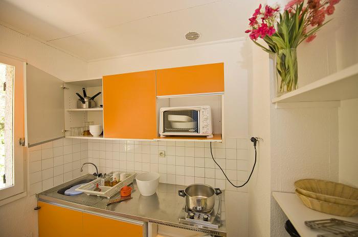 Appartement équipé de plaques électriques, réfrigérateur, mini four, ustensiles de cuisine et vaisselle pour 5 personnes. Couvertures et oreillers fournis.Terrasse avec mobilier de jardin.