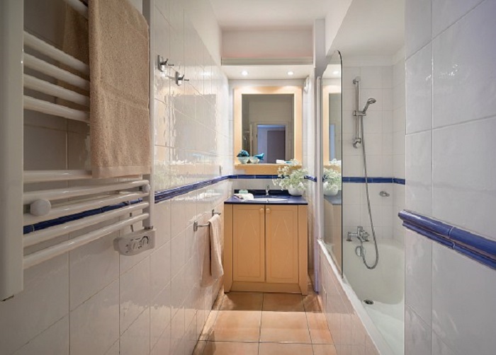 Appartement de deux pièces pour quatre personnes de 26 à 30m² comprenant un séjour avec une banquette lit gigogne et une petite chambre avec un lit double, une salle de bains et des toilettes séparés.A noter : Tous orientés côté nord (côté fontaine).